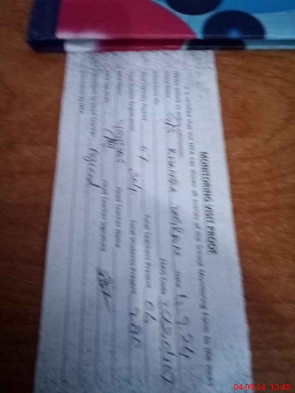 | Attendance Register | Head Teacher | MEA with School | Visit Proof |