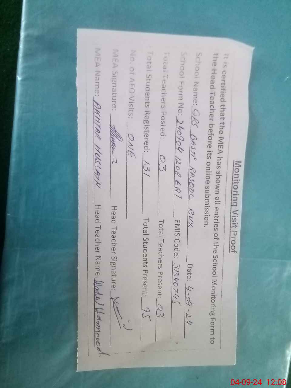 | EMIS Code: 31340745 | Name of School: GPS BASTI RASOOL BUX | |||