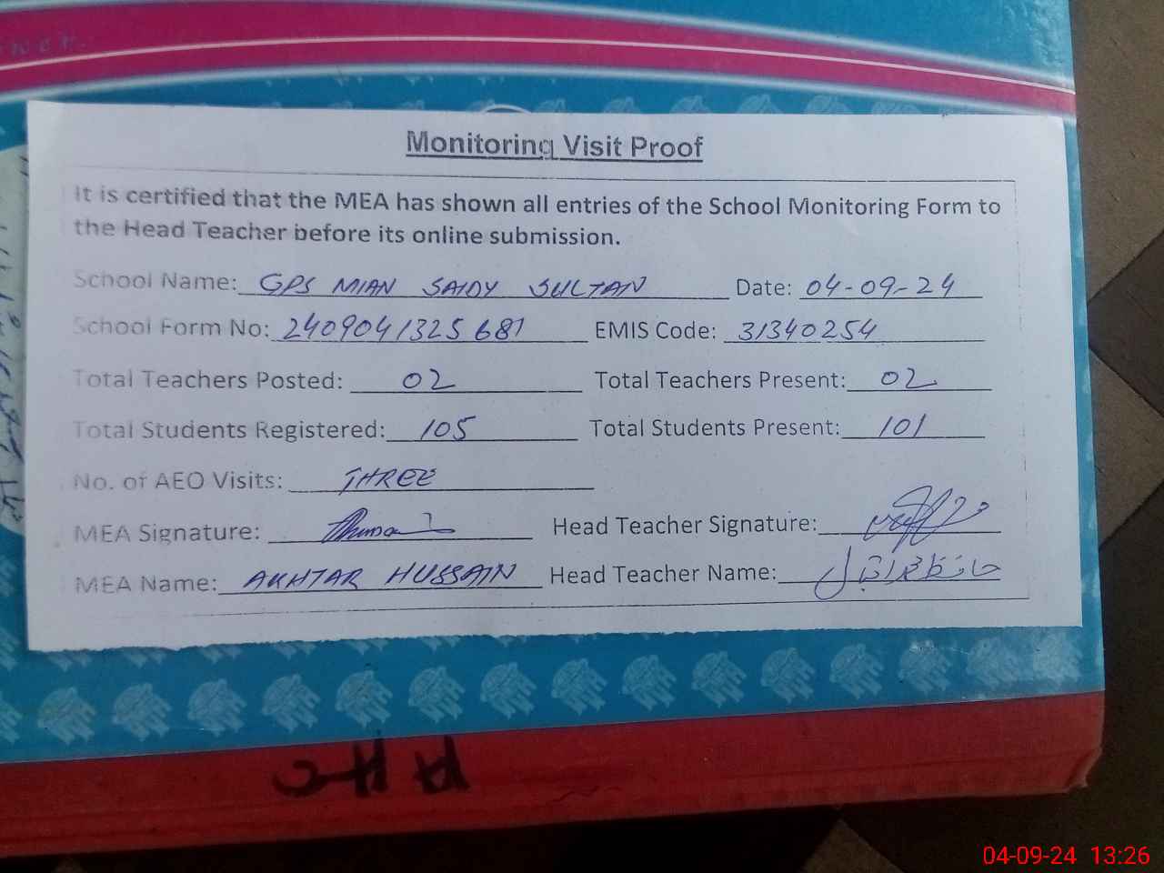 | EMIS Code: 31340254 | Name of School: GPS MIANS SAIDY SULTAN | |||