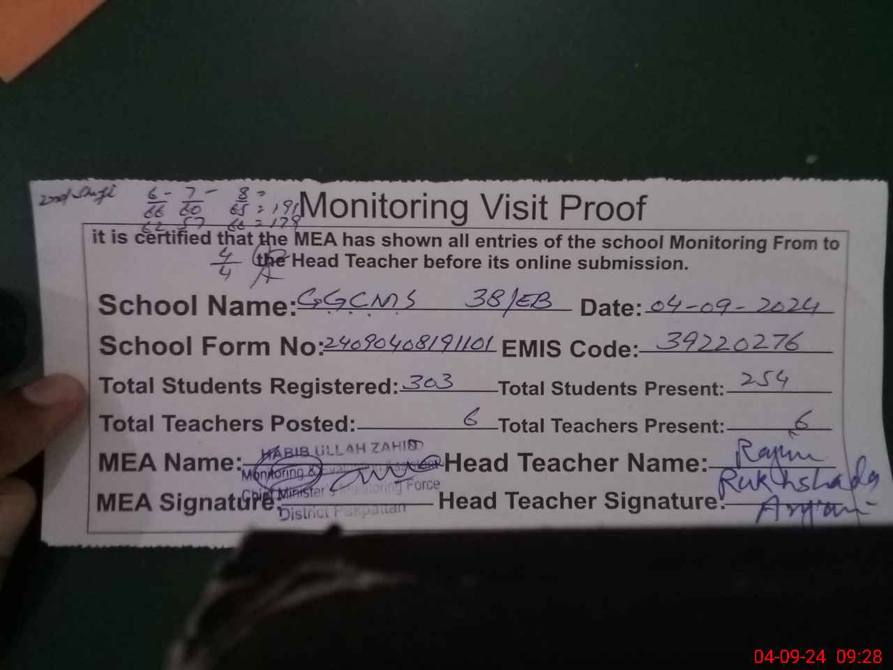 | Name: SA**** UZ**** FA**** Designation: (School Headmaster's/Headmistress's) EST Phone/Cell Number: 03**** |