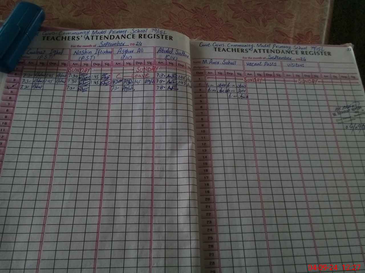| Remarks (Use Separate Page if Required): Note NO AEO VISIT IN MONTH OF AUGUST 2024 ASGHAR ALI C4 ABSENT DURING VISIT TIME ABDUL SATTAR C4 ALSO ABSENT DURING VISIT | |||||