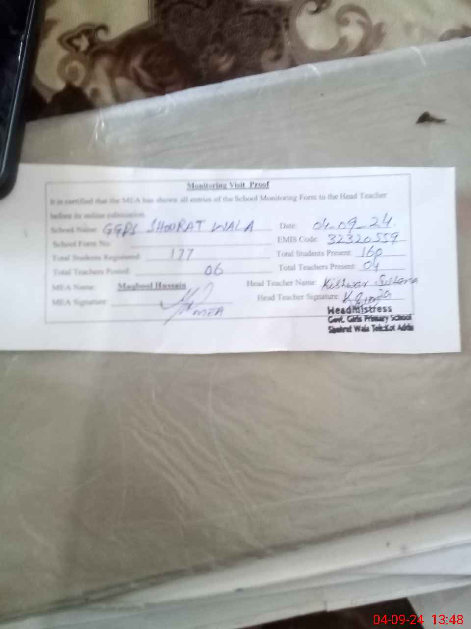 | EMIS Code: 32320559 | Name of School: GGPS SHOHRAT WALA | |||