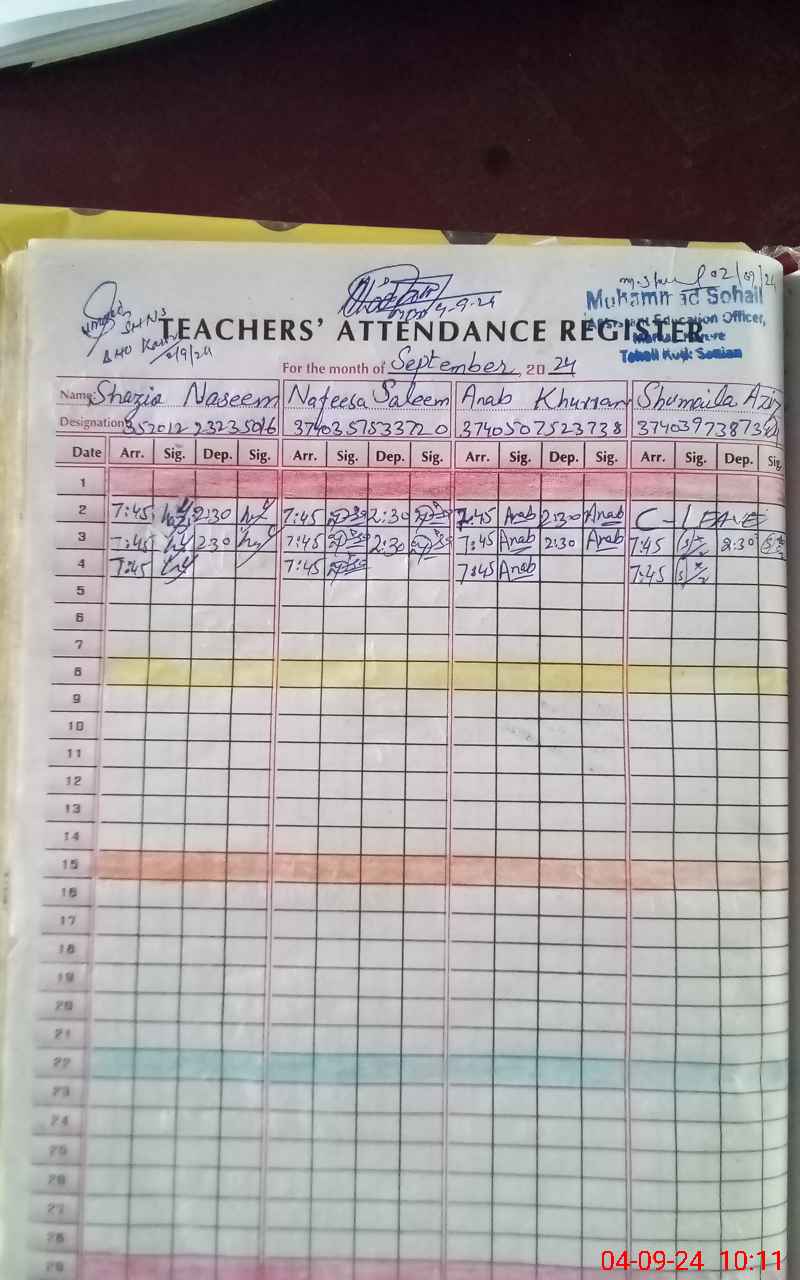 | Name: SH**** NA**** Designation: (School Headmaster's/Headmistress's) PST Phone/Cell Number: 03**** |