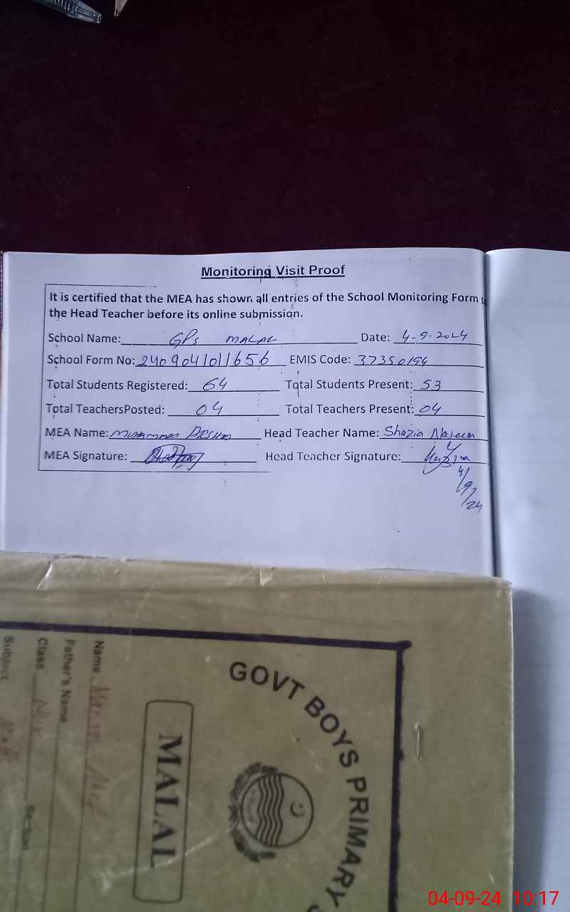 | EMIS Code: 37350194 | Name of School: GPS MALAL | |||