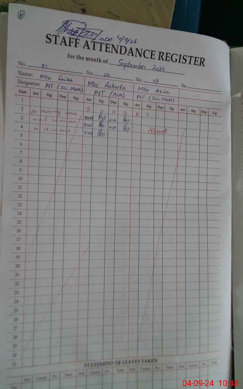 | Leave | Duty | Absent | Maternity | Medical | Ex- Pak |