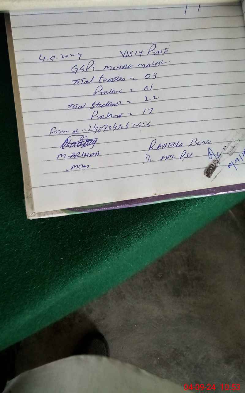 | EMIS Code: 37350121 | Name of School: GGPS MOHRA MALAL | |||