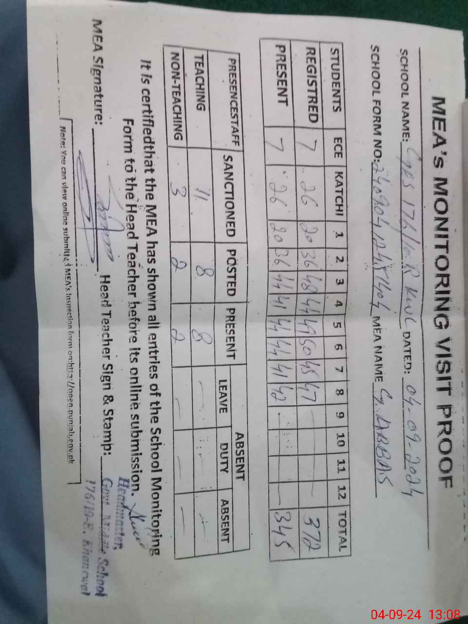| EMIS Code: 36420068 | Name of School: GES 176/10-R, KHANEWAL | |||