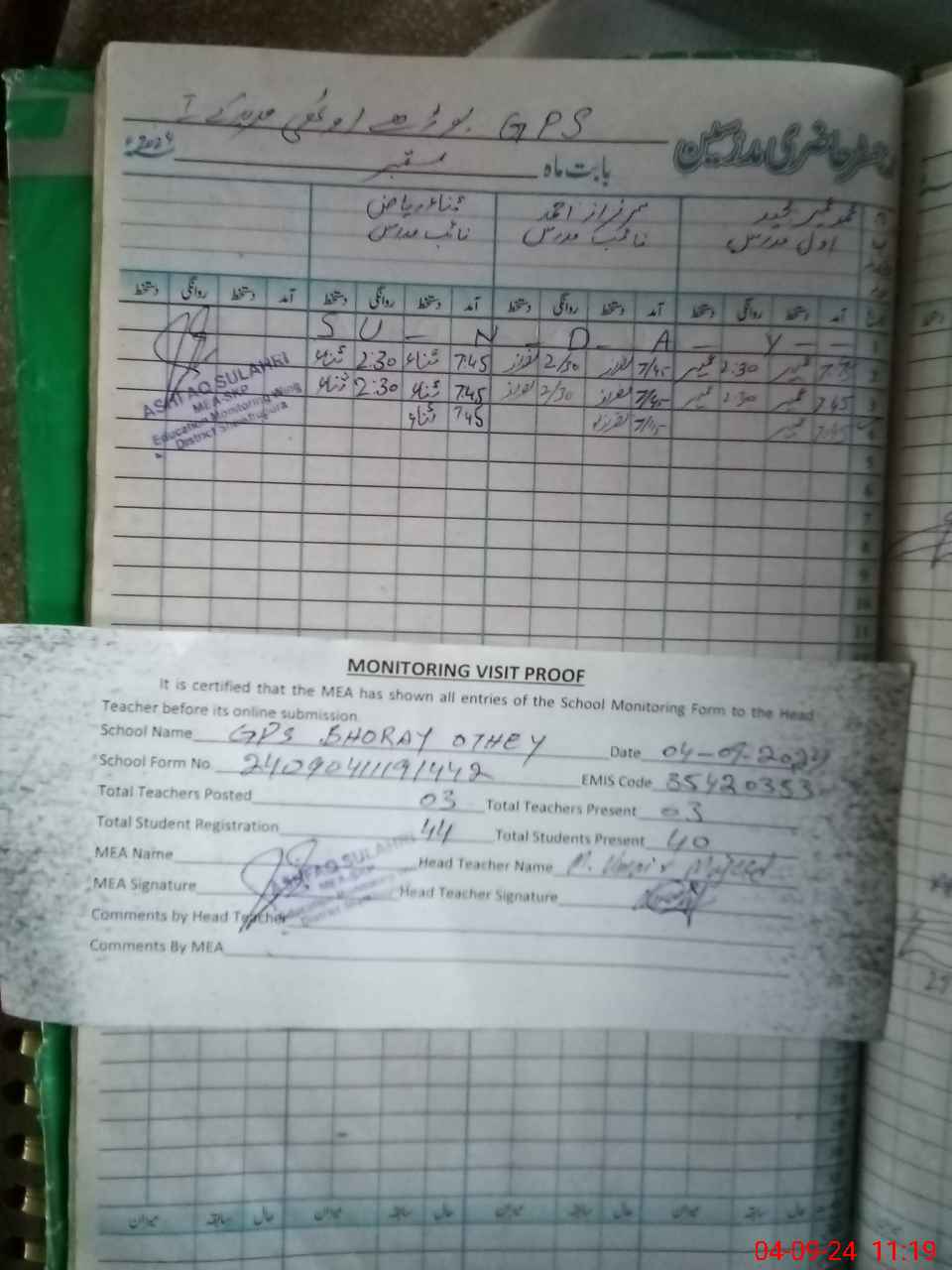 | EMIS Code: 35420353 | Name of School: GPS BHORAY OTHEY | |||