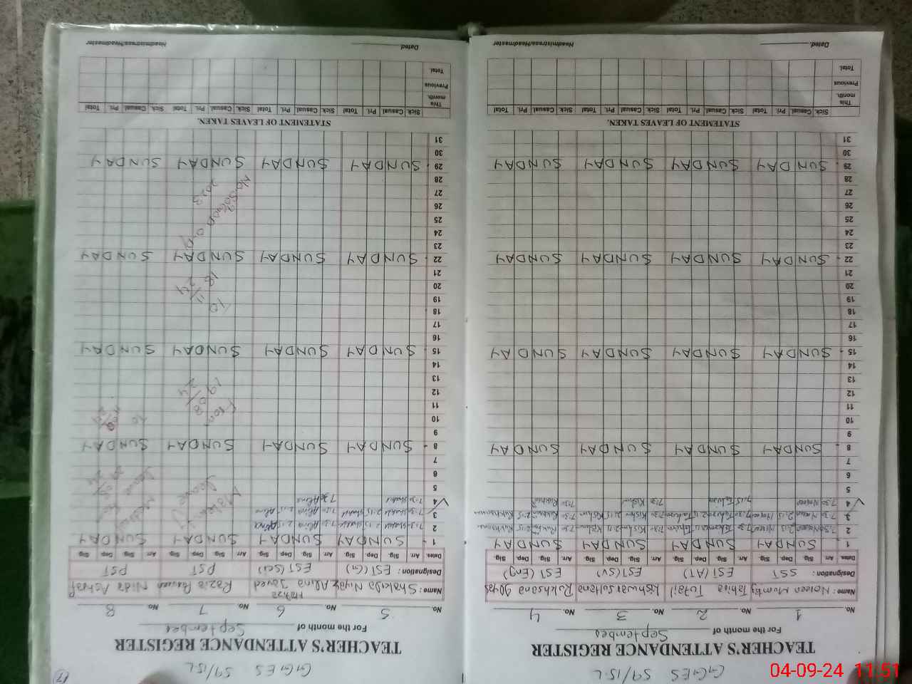 | Remarks (Use Separate Page if Required): NIDA ASHRAF PST FOUND UN AUTHORISED THERE IS NO PROOF AND APPROVED MEDICAL LEAVE FROM 29 AUGUST 2024 TO 11 SEPTEMBER 2024 IS AVAILABLE RANDOM CLASS SEVEN IS NOW PASSED OUT FROM THIS SCHOOL | |||||