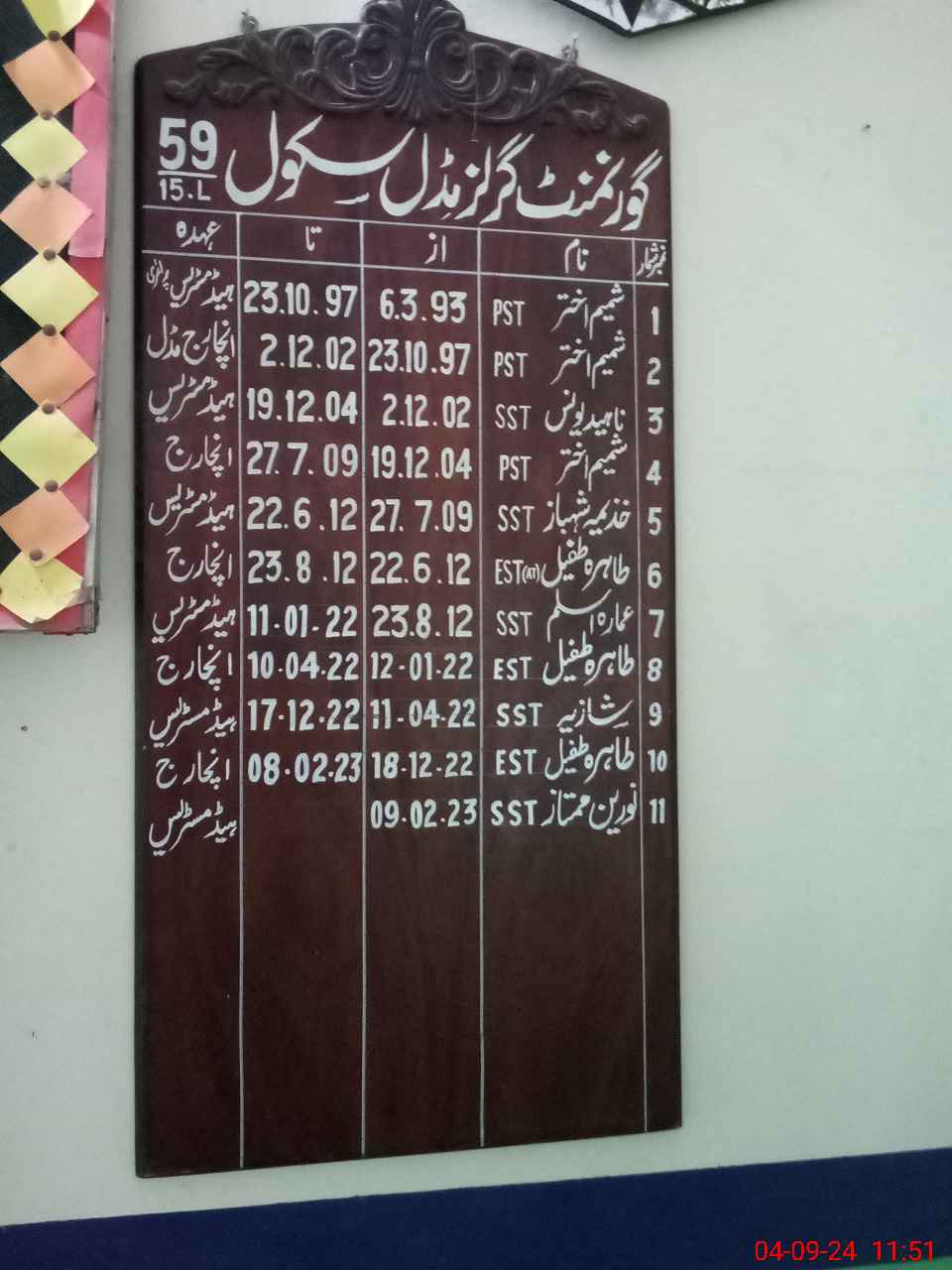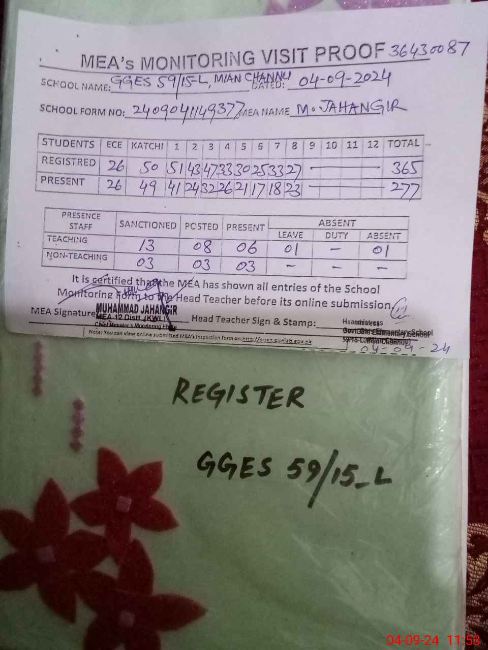 | EMIS Code: 36430087 | Name of School: GGES 59/15-L, MIAN CHANNU | |||