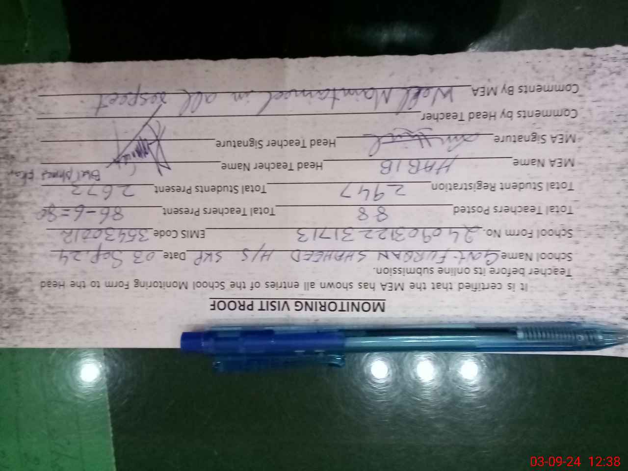 | Monitoring Date: 03-09-2024 | Start Time: 03-09-2024 09:17 AM | End Time: 03-09-2024 12:42 PM | Name of MEA: Mu**** Ha**** | |