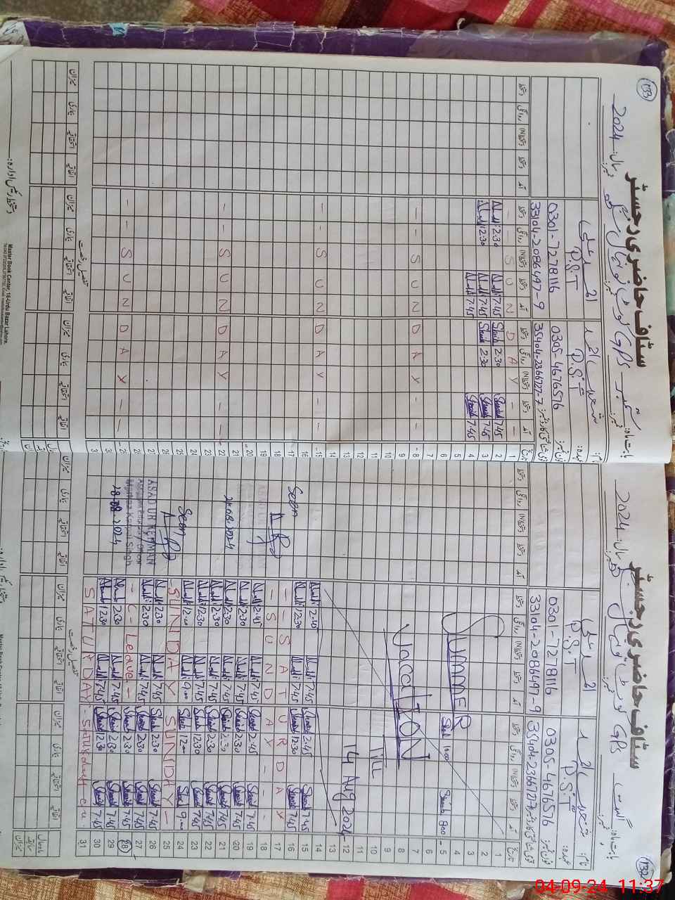 | CNIC | Full Name | Designation | R/C | Absence During Last Calender Month |