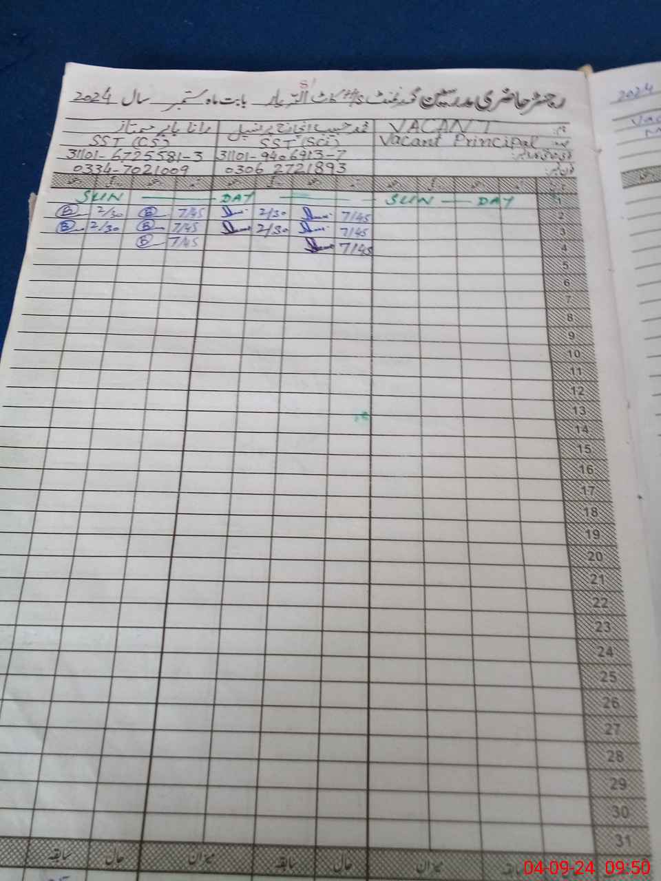 | Name: MU**** HA**** Designation: (School Headmaster's/Headmistress's) SST SCI Phone/Cell Number: 03**** |