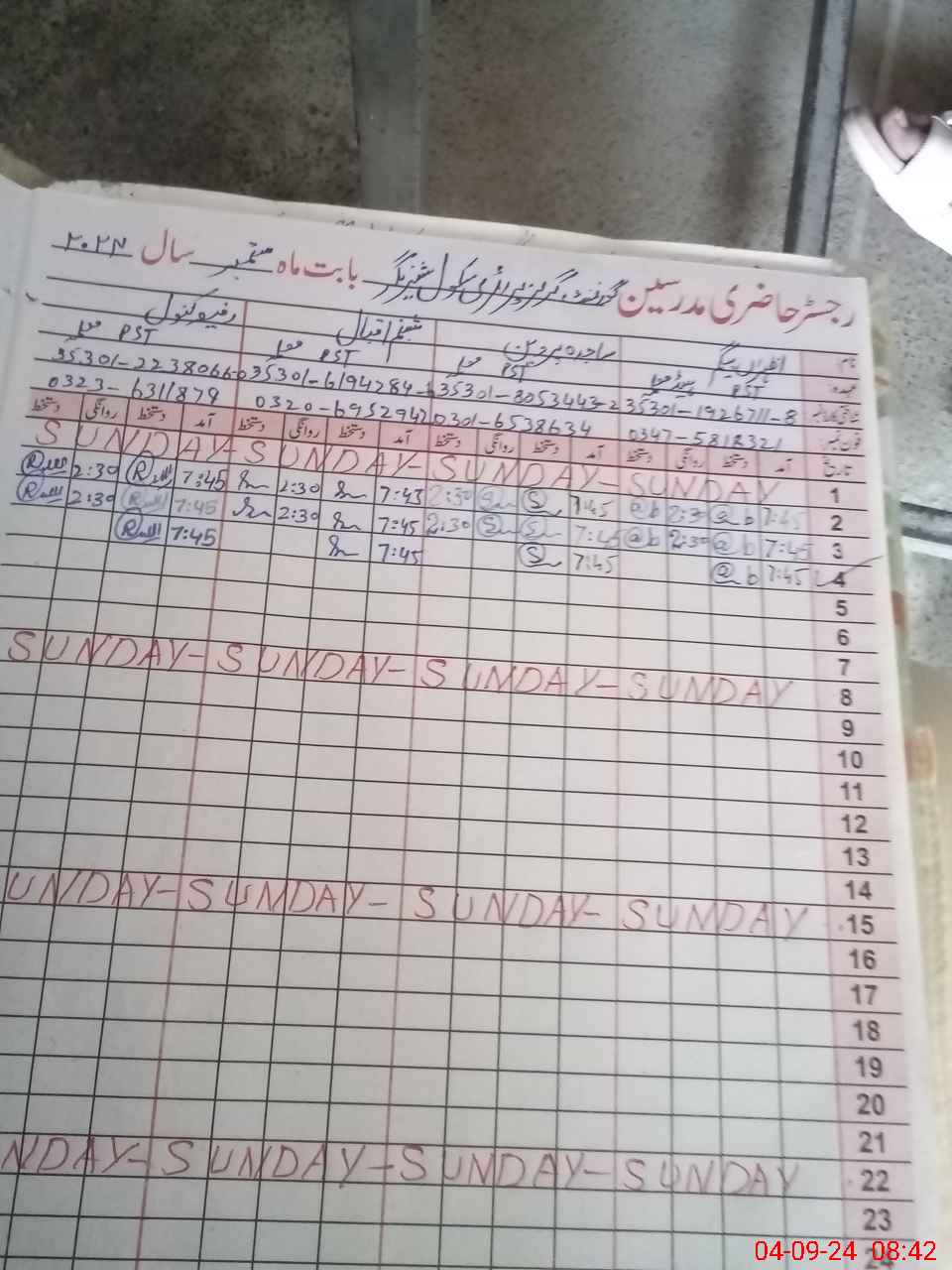 | Name: AZ**** Be**** Designation: (School Headmaster's/Headmistress's) PST Phone/Cell Number: 03**** |