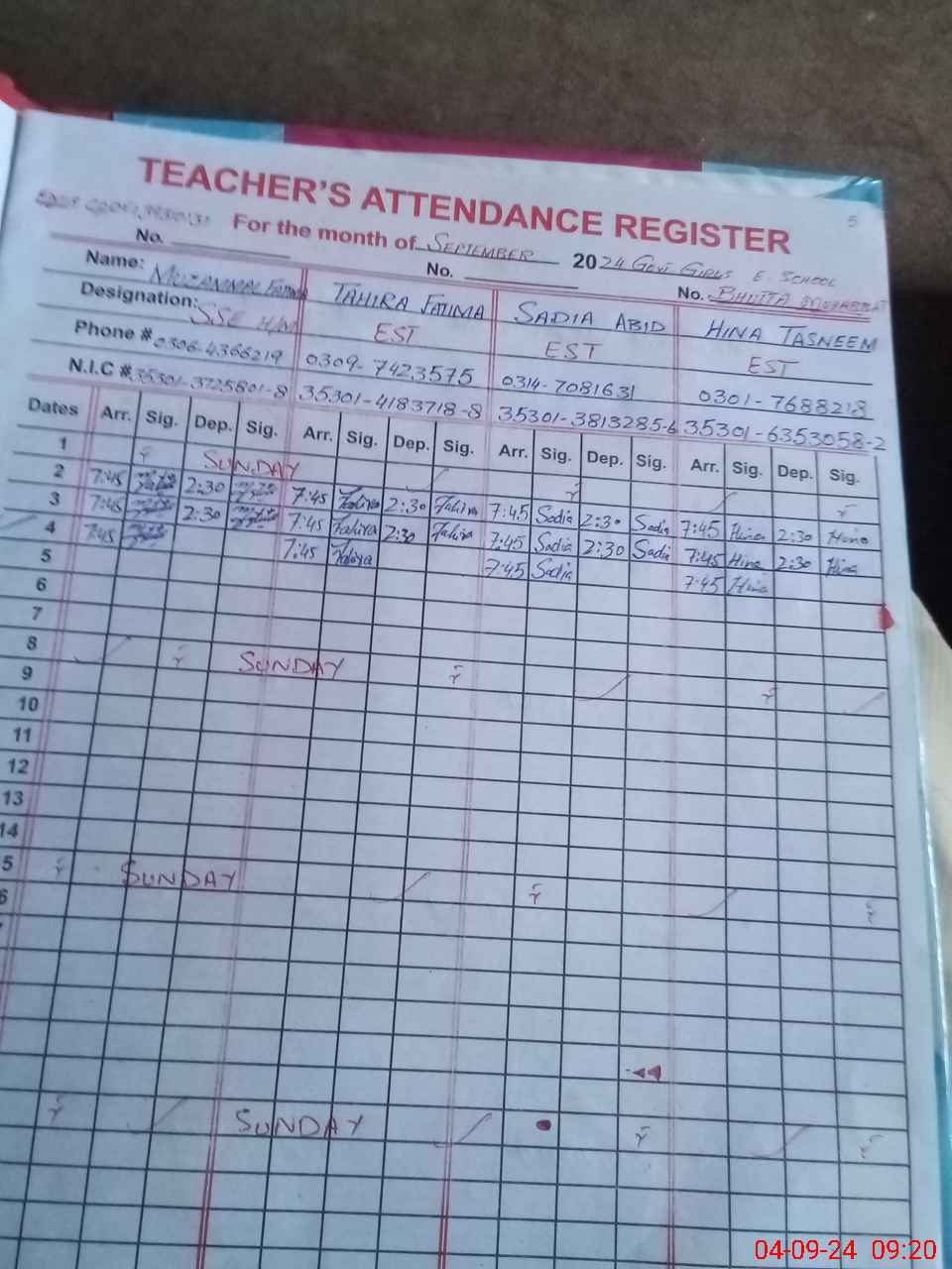 | Name: MU**** Fa**** Designation: (School Headmaster's/Headmistress's) SSE MATH Phone/Cell Number: 03**** |
