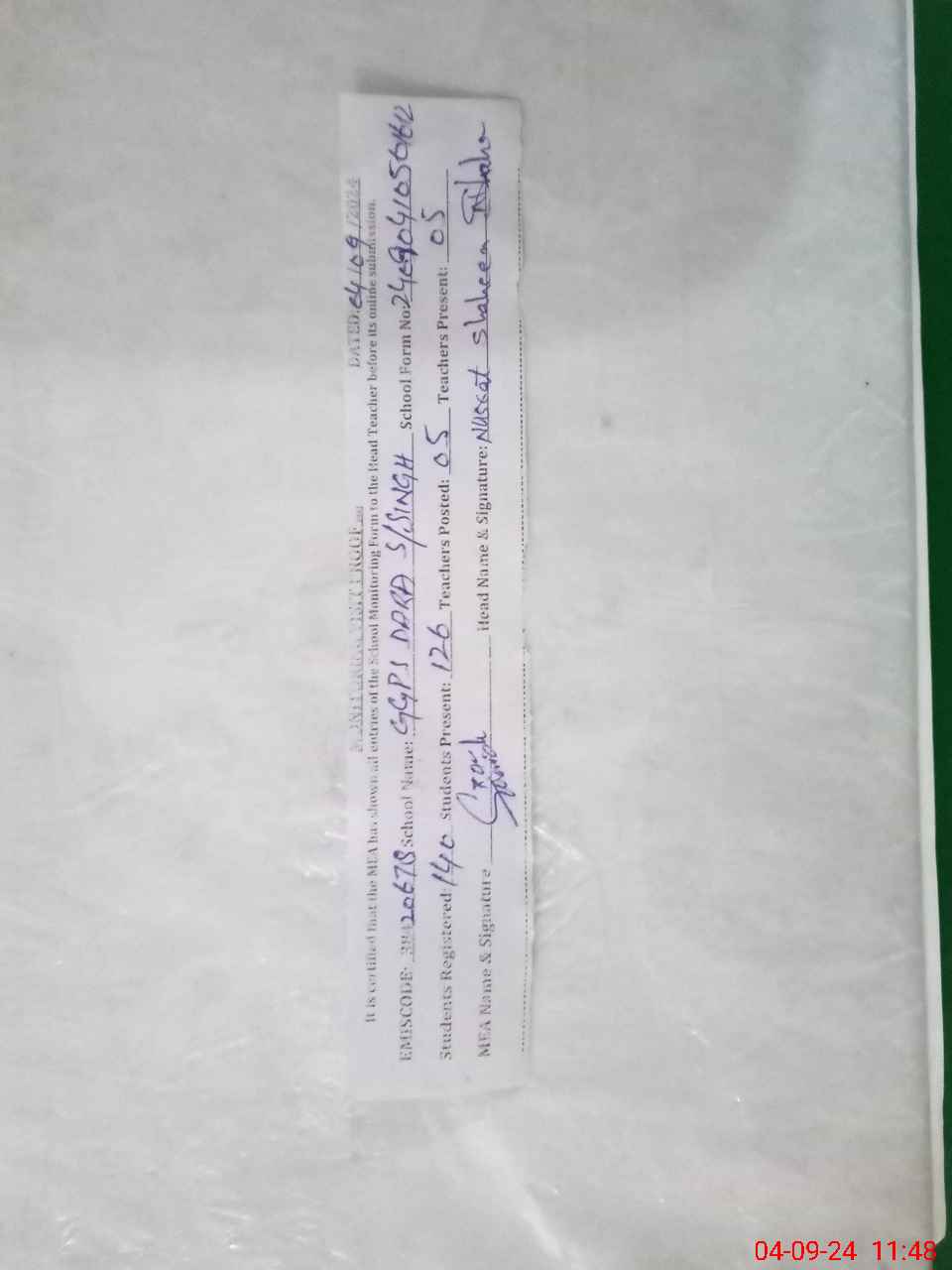 | EMIS Code: 38420678 | Name of School: GGPS DERA SUNJAN SINGH | |||
