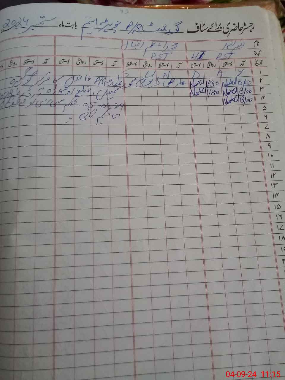 | Remarks (Use Separate Page if Required): Mr Muhammad Azam PST attached with GMPS Abadi Fazal ky Banglagogera okara vide CEODEA OKA 1078 dated 05 April 2024 | |||||