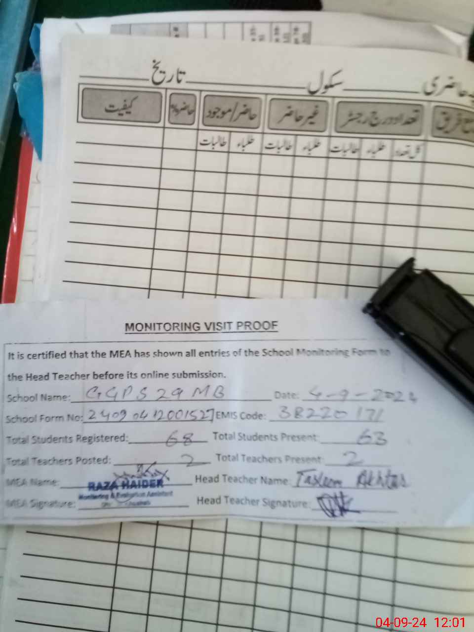 | EMIS Code: 38220171 | Name of School: GGPS CHAK NO 29 MB | |||