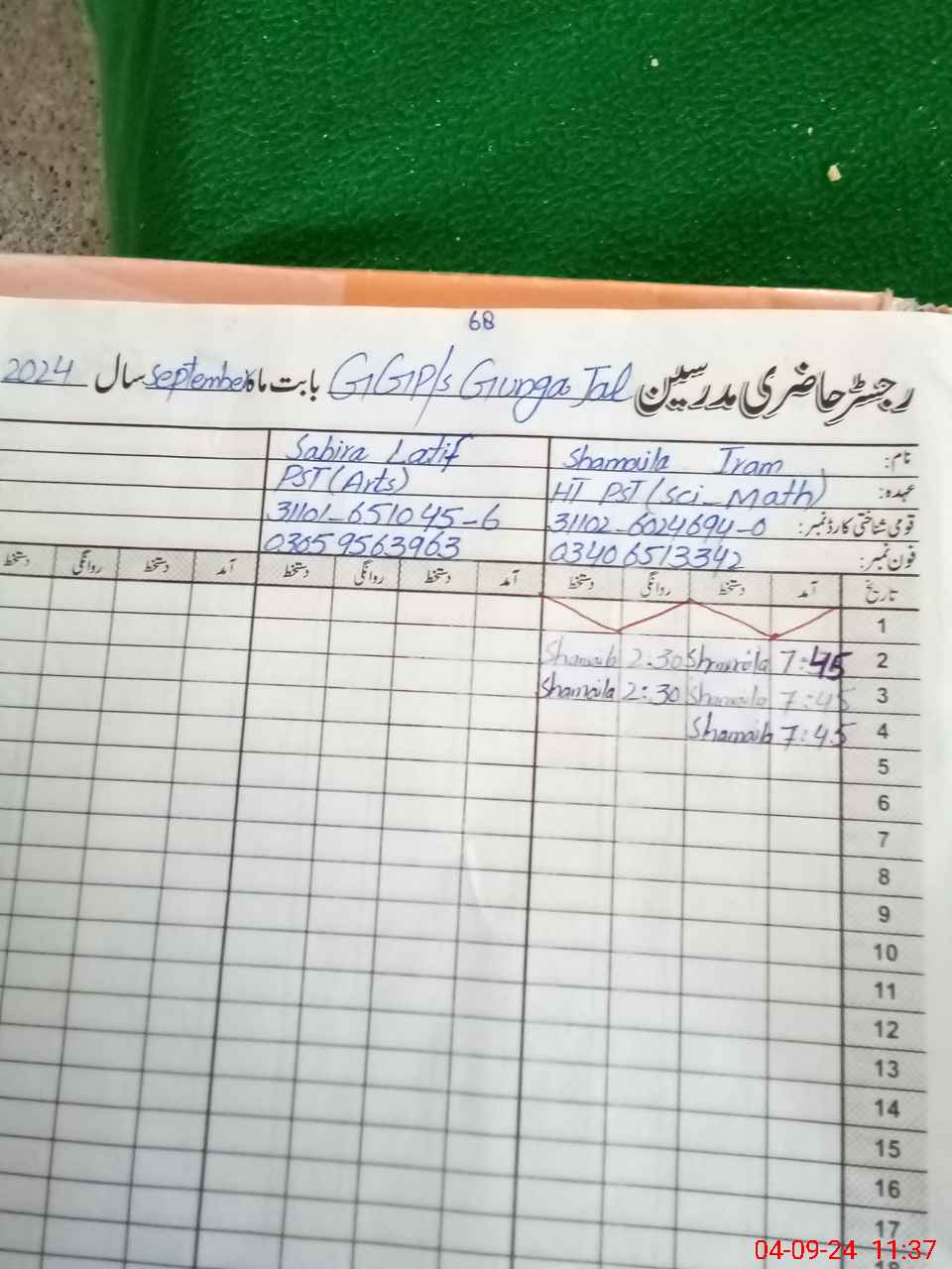 | Name: SH**** IR**** Designation: (School Headmaster's/Headmistress's) E S E ( Sci Math) Phone/Cell Number: 03**** |