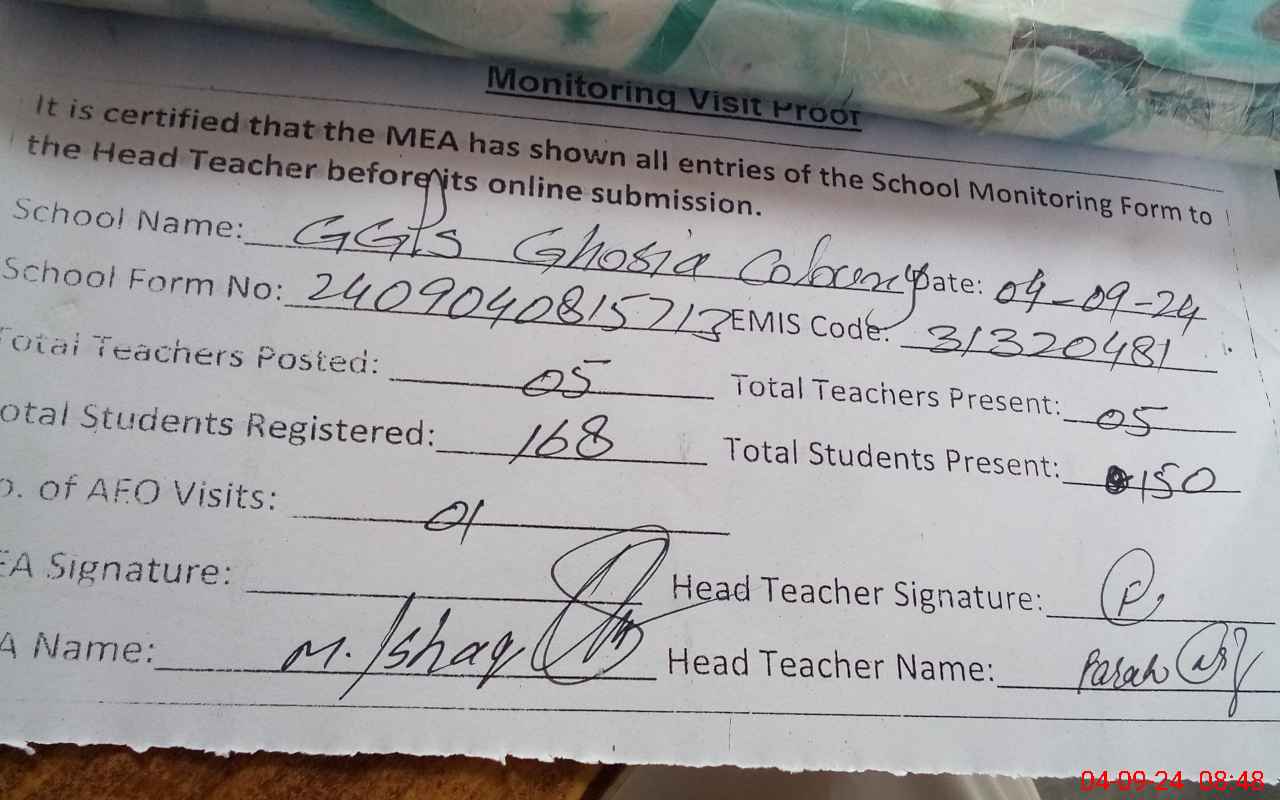| EMIS Code: 31320481 | Name of School: GGPS GOUSIA COLONY | |||
