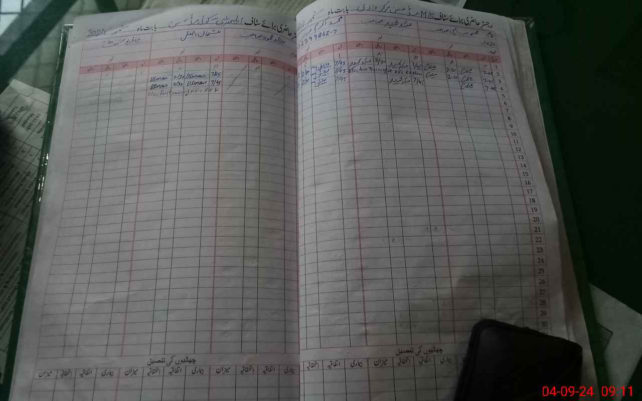 | CNIC | Full Name | Designation | R/C | Absence During Last Calender Month |
