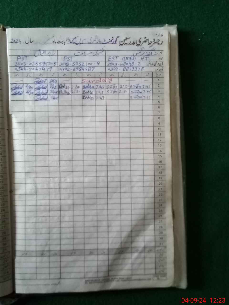 | Name: Su**** Na**** Designation: (School Headmaster's/Headmistress's) EST Phone/Cell Number: 03**** |