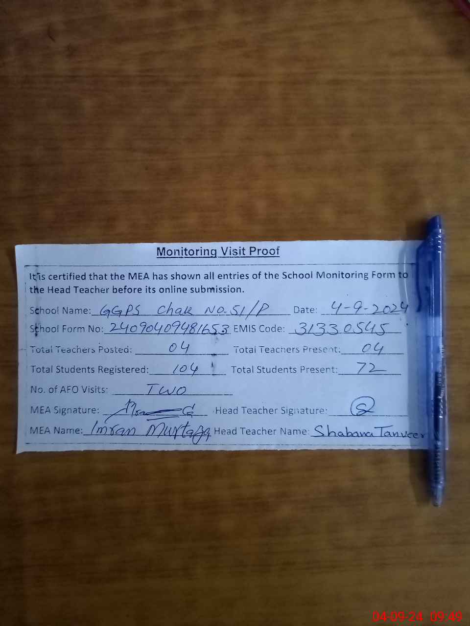 | EMIS Code: 31330545 | Name of School: GGPS CHAK 51/P | |||