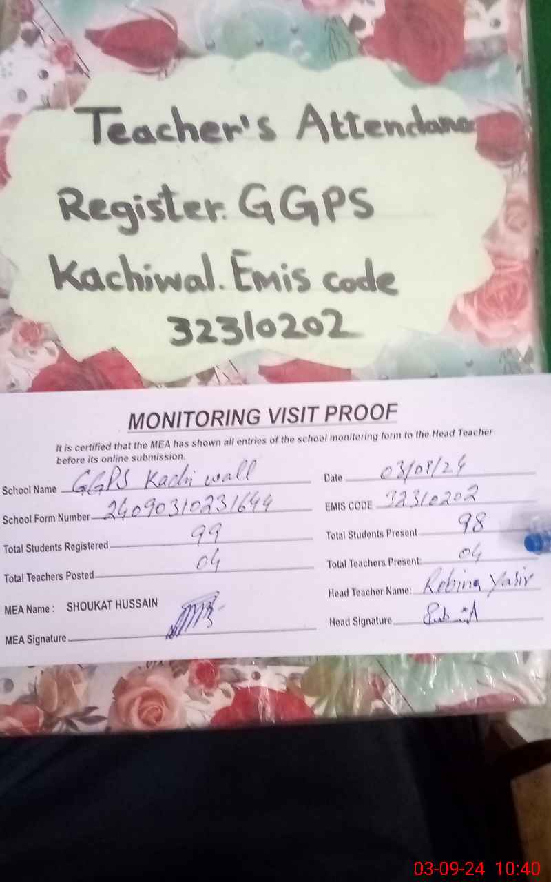 | EMIS Code: 32310202 | Name of School: GGPS KACHI WALI | |||