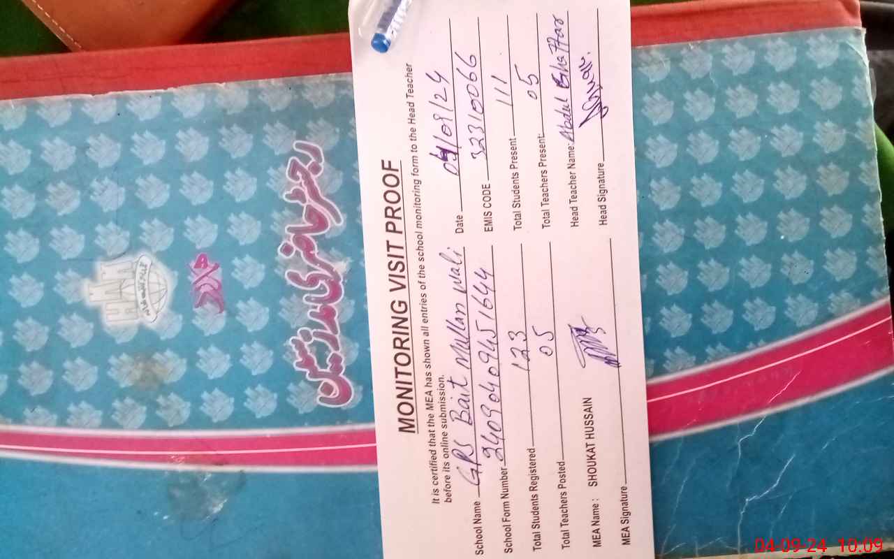 | EMIS Code: 32310066 | Name of School: GPS BAIT MULLAN WALI | |||