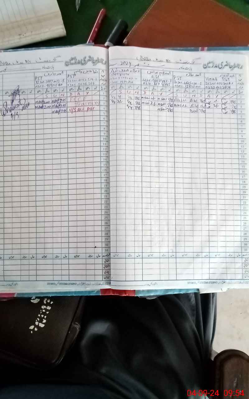 | CNIC | Full Name | Designation | R/C | Absence During Last Calender Month |