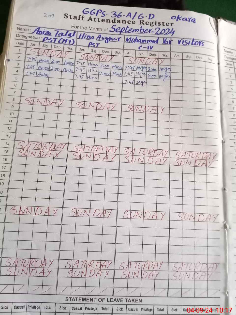| Leave | Duty | Absent | Maternity | Medical | Ex- Pak |