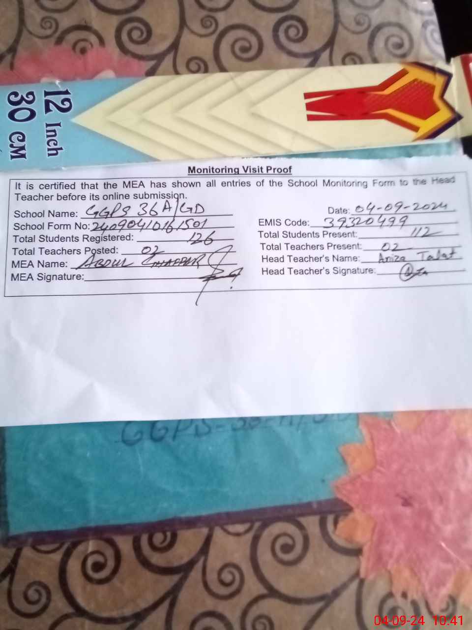| EMIS Code: 39320499 | Name of School: GGPS 36-A/G.D | |||