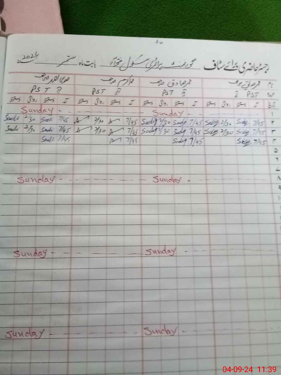 | Name: MU**** SI**** Designation: (School Headmaster's/Headmistress's) PST Phone/Cell Number: 03**** |