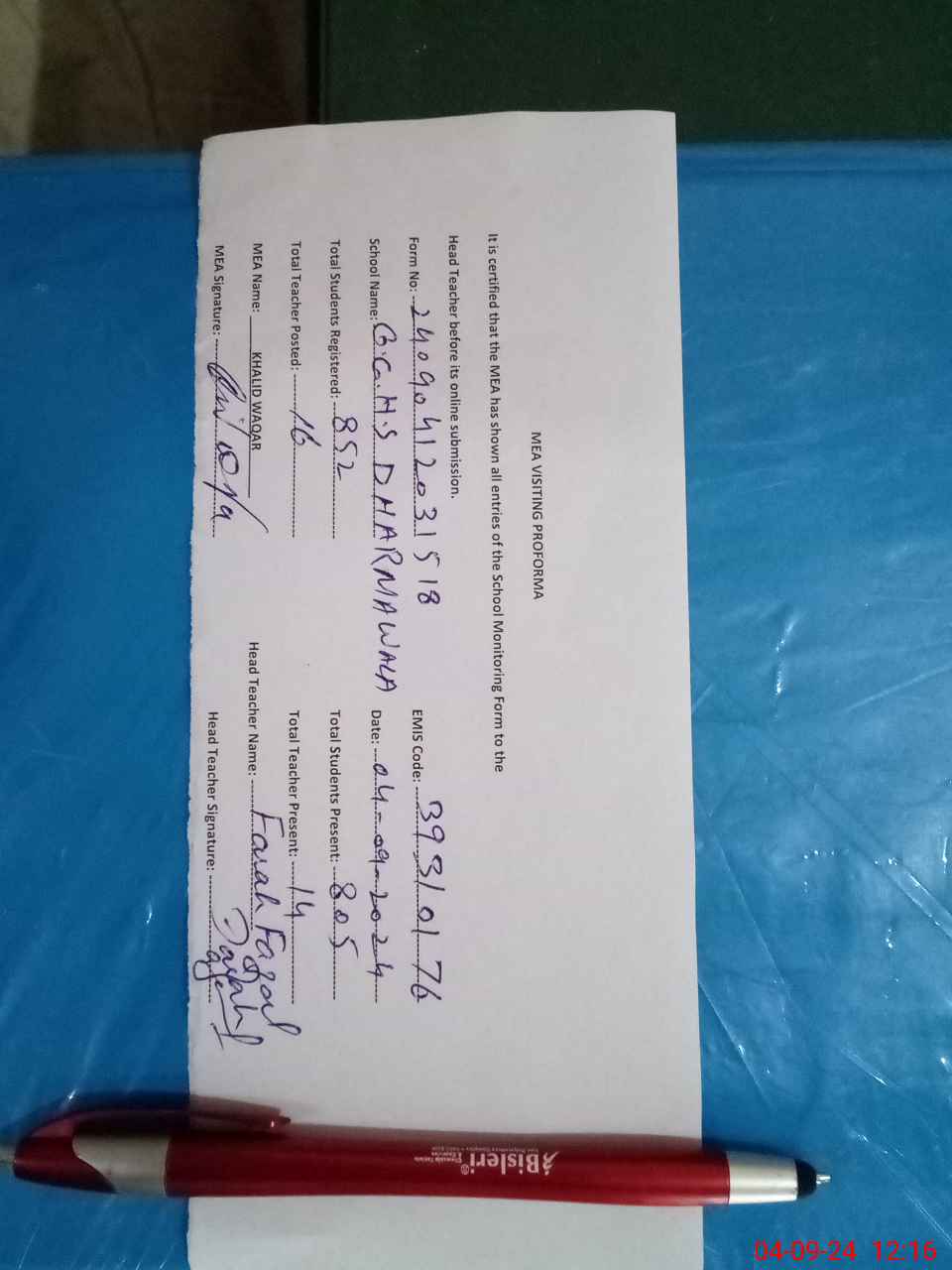 | EMIS Code: 39310176 | Name of School: GGHS DHARMA WALA | |||