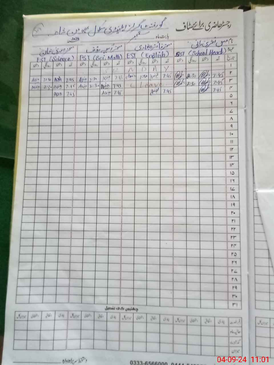| Name: BU**** RA**** Designation: (School Headmaster's/Headmistress's) S.S.T.(Seco Phone/Cell Number: 03**** |