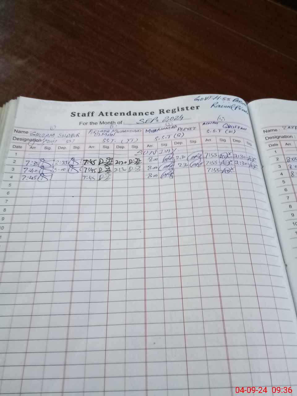 | CNIC | Full Name | Designation | R/C | Absence During Last Calender Month |