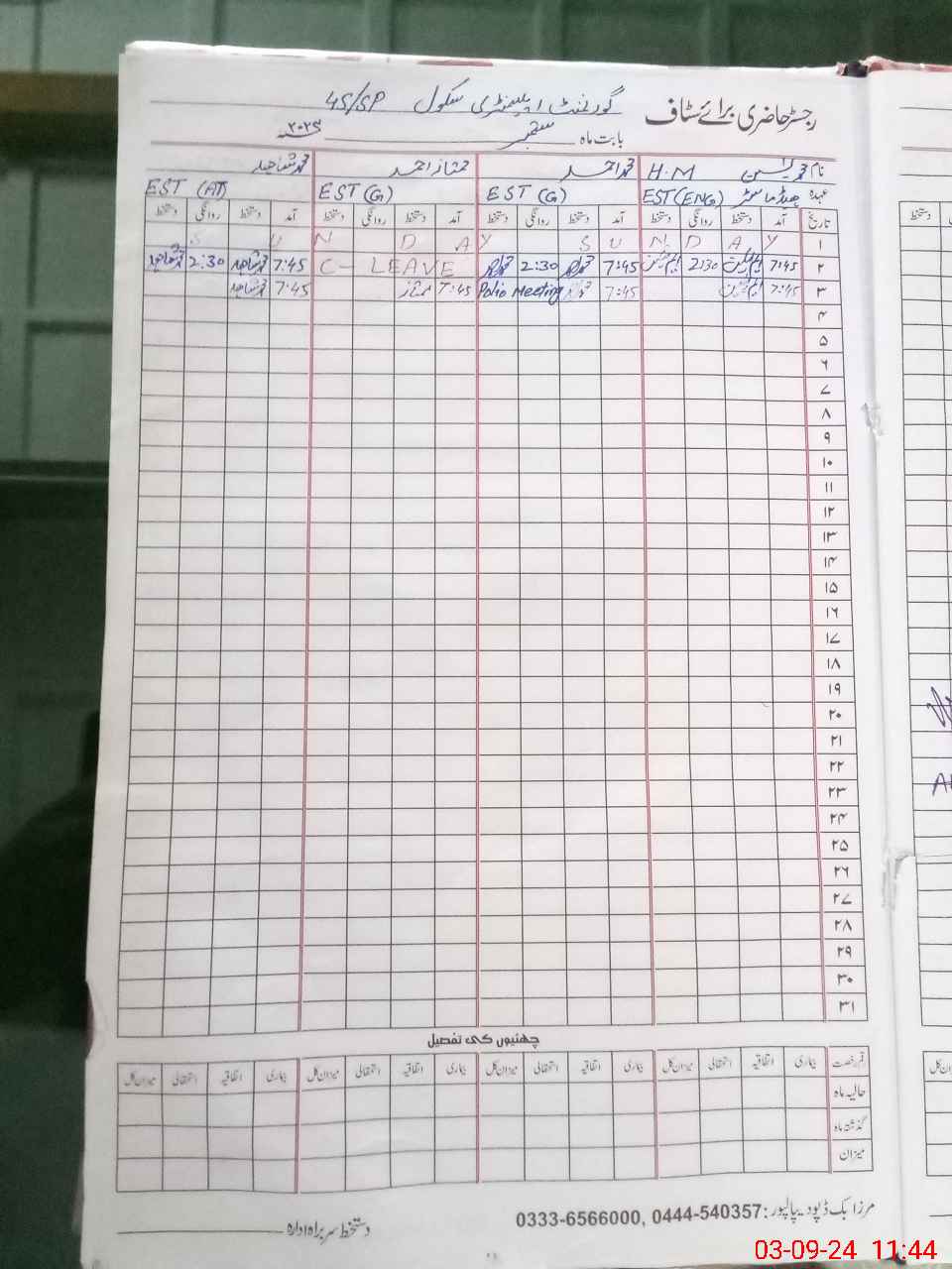 | Name: Mu**** Ya**** Designation: (School Headmaster's/Headmistress's) EST Eng Phone/Cell Number: 03**** |