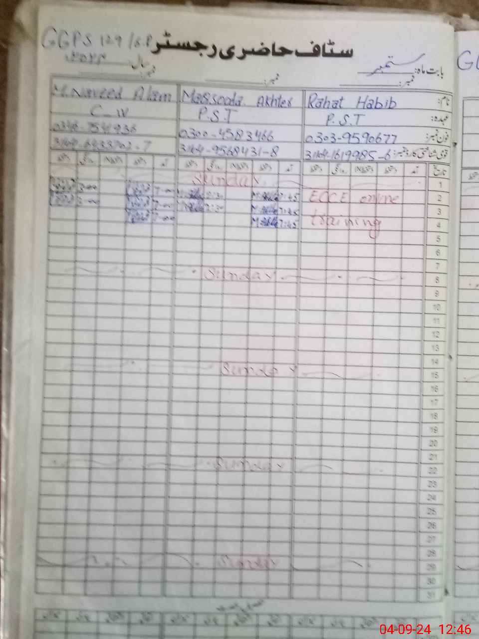 | 31**** | Sa**** Ba**** | 2 | 2 | 0 | 0 | 0 | 0 | 0 | 0 | 0 | 0 | 0 | Absent (Un-Authorized) |