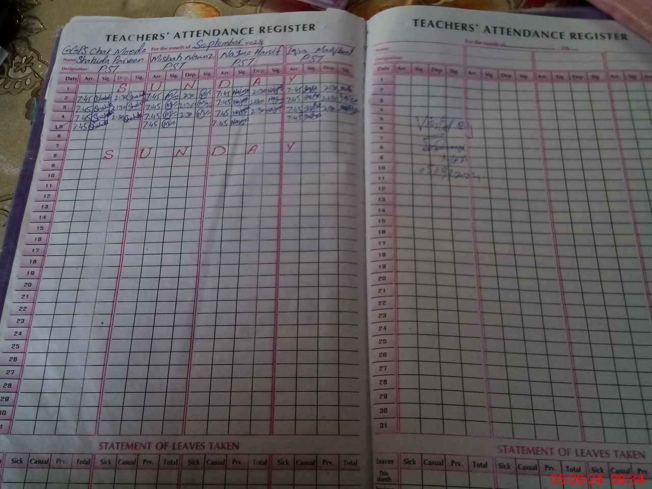 | Leave | Duty | Absent | Maternity | Medical | Ex- Pak |