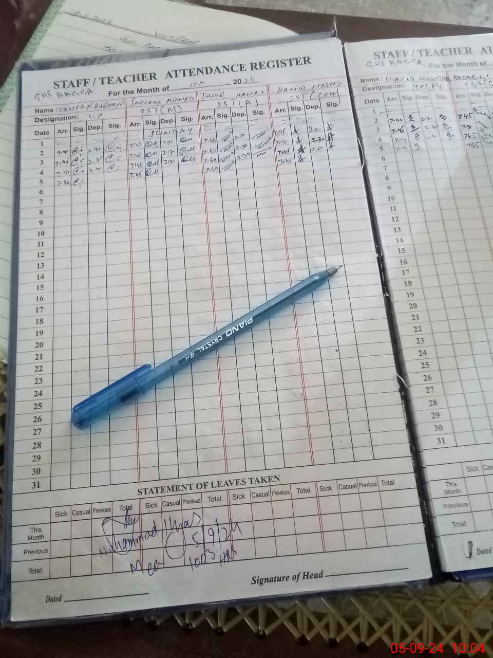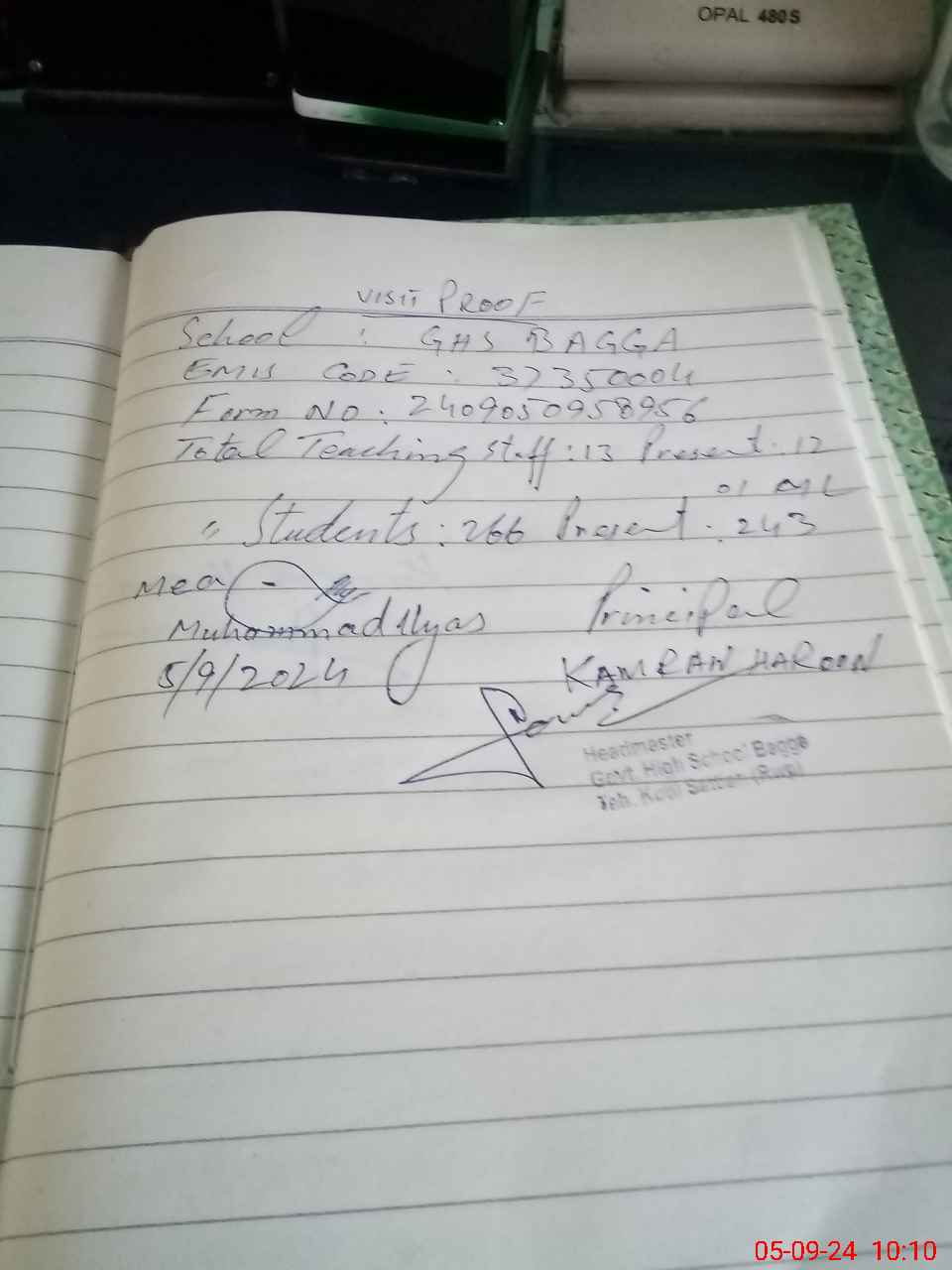 | Name: KA**** HA**** Designation: (School Headmaster's/Headmistress's) S.S.T.(ART)) Phone/Cell Number: 03**** |