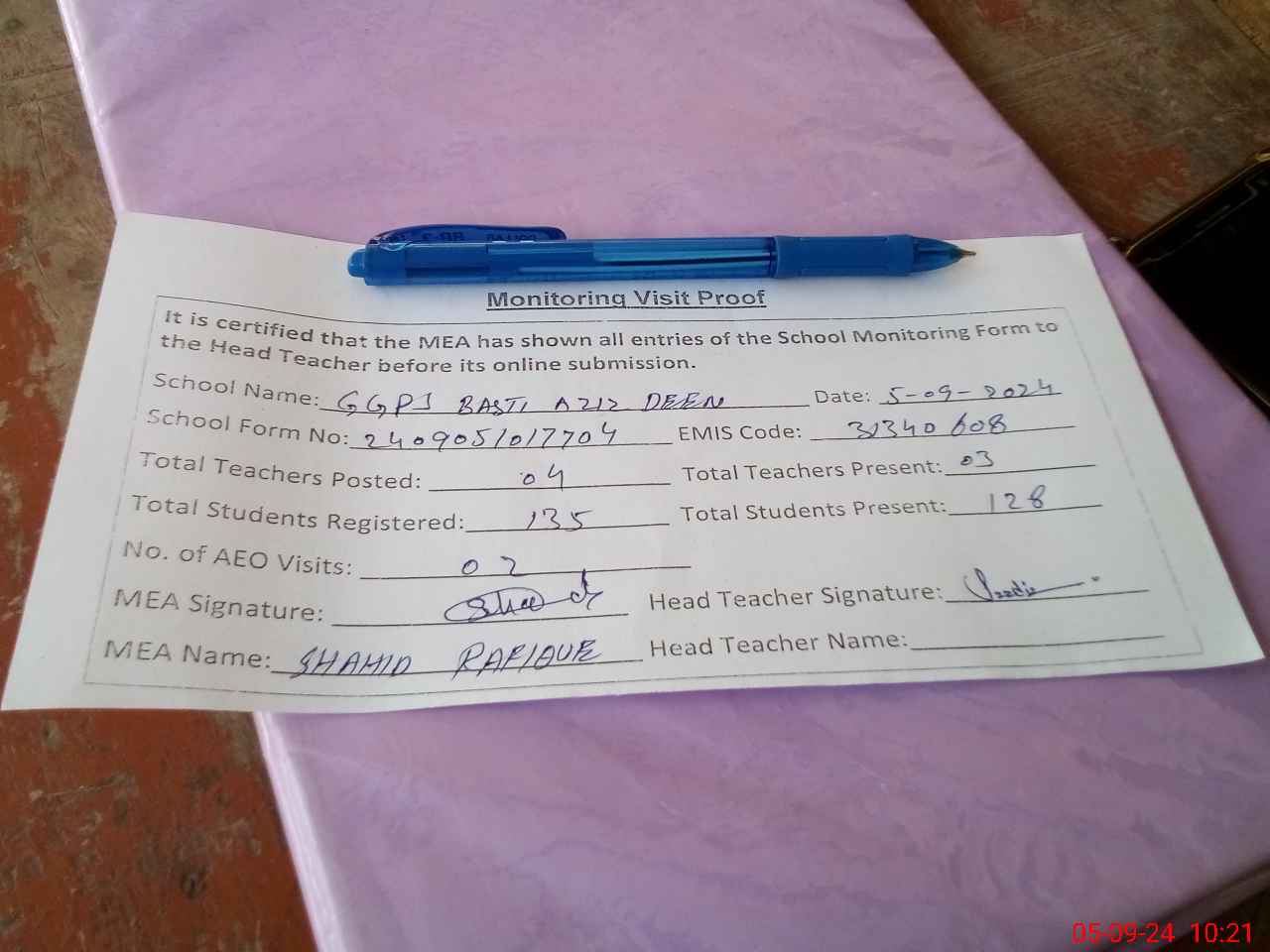 | EMIS Code: 31340608 | Name of School: GGPS BASTI AZIZ DEEN | |||
