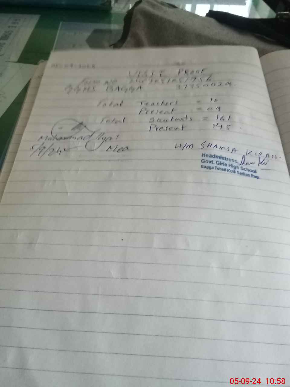| Attendance Register | Head Teacher | MEA with School | Visit Proof |
