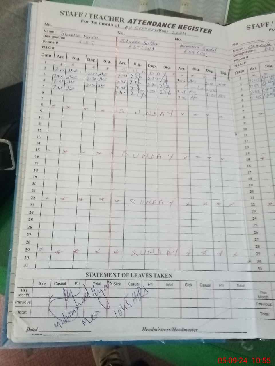 | Name: SH**** KI**** Designation: (School Headmaster's/Headmistress's) SST Phone/Cell Number: 03**** |