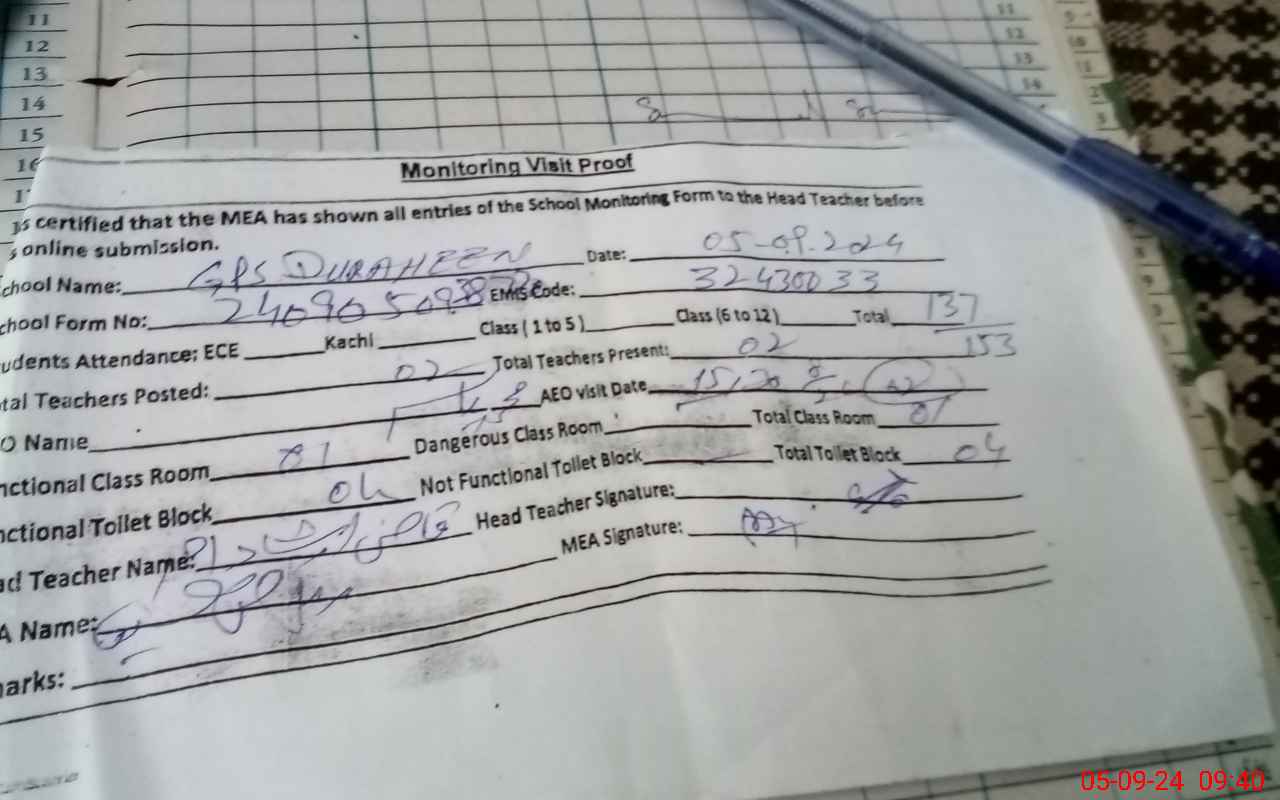 | EMIS Code: 32430033 | Name of School: GPS BASTI DURAHEN | |||