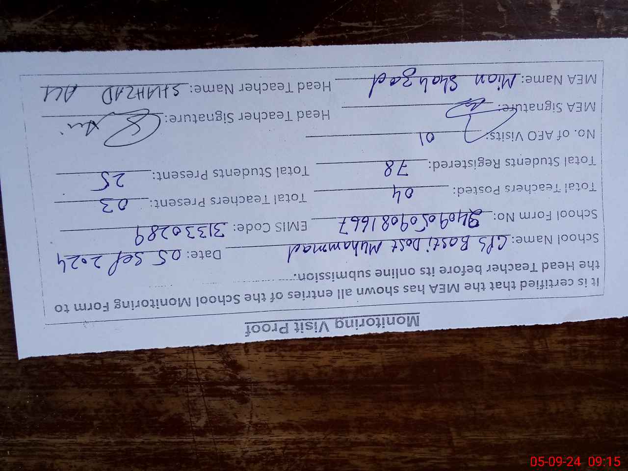 | Name: SH**** AL**** Designation: (School Headmaster's/Headmistress's) P S T Phone/Cell Number: 03**** |