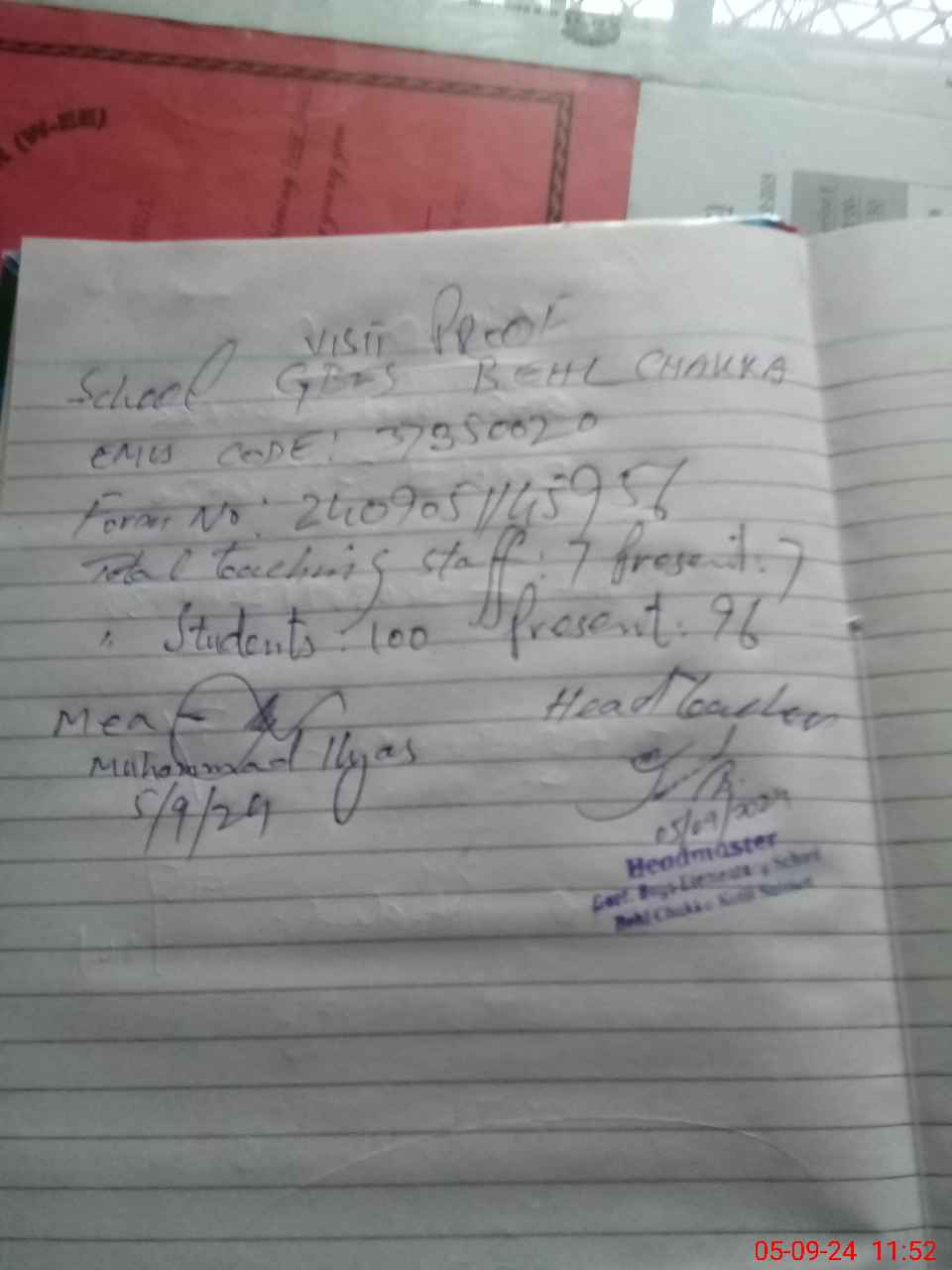 | EMIS Code: 37350020 | Name of School: GES BEHL CHAKKA | |||