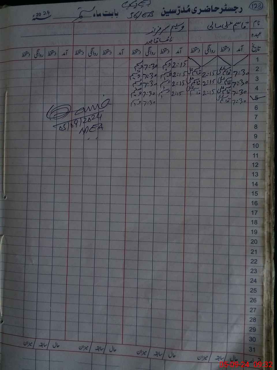 | Name: BA**** BI**** Designation: (School Headmaster's/Headmistress's) S.S.T.(GENERAL) Phone/Cell Number: 03**** |