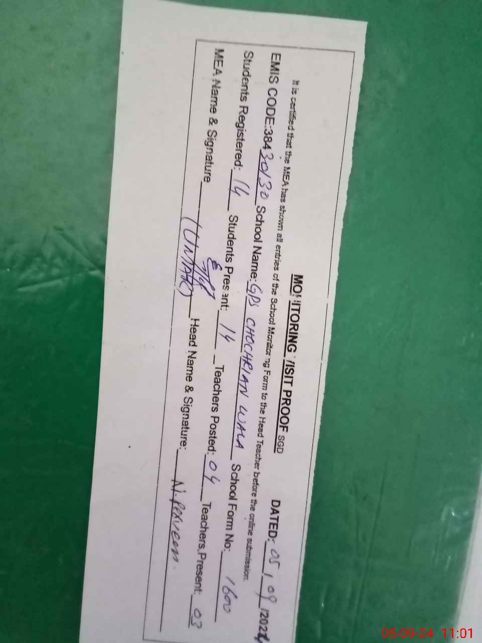| EMIS Code: 38430130 | Name of School: GPS CHOCHRIAN WALA | |||