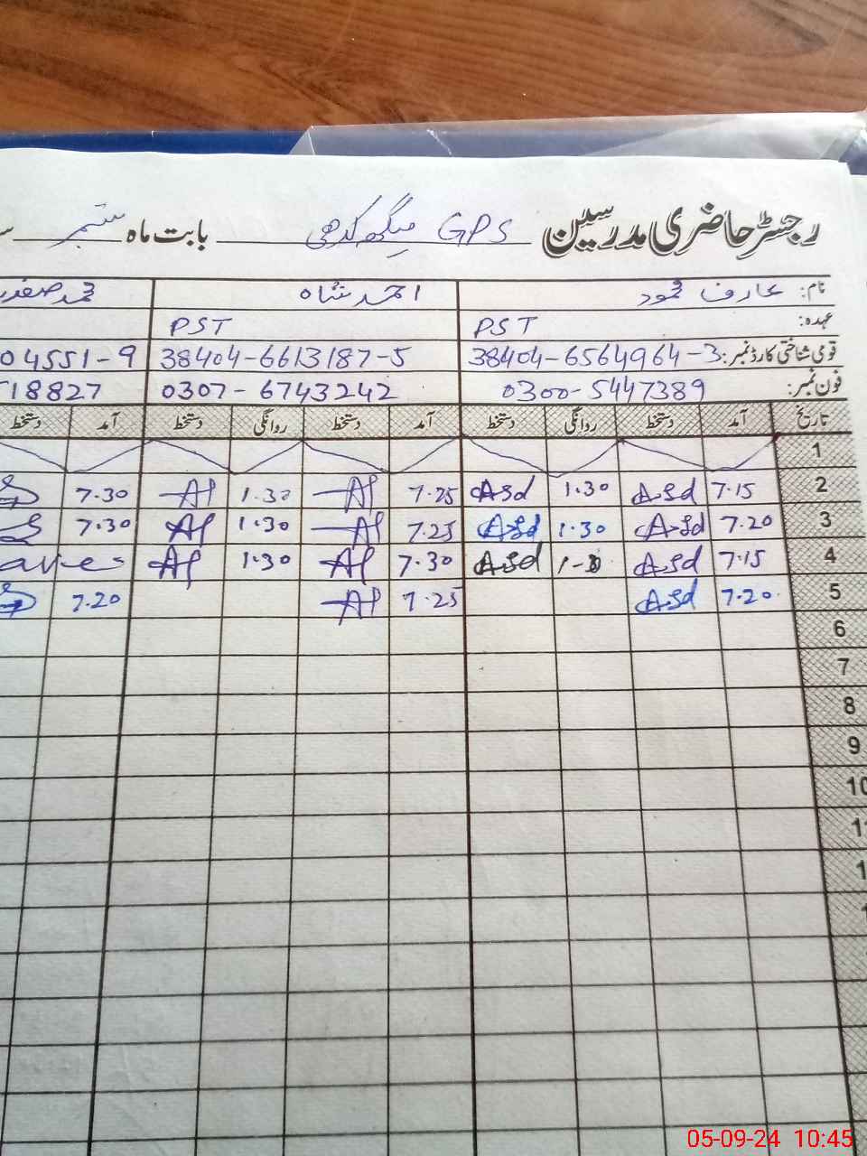 | Name: AR**** MA**** Designation: (School Headmaster's/Headmistress's) PST Phone/Cell Number: 03**** |