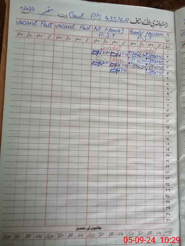 | CNIC | Full Name | Designation | R/C | Absence During Last Calender Month |